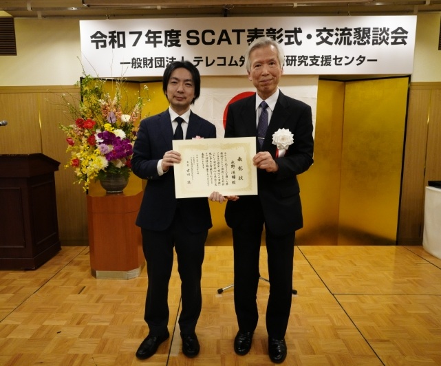 水野洋輔准教授が、一般財団法人テレコム先端技術研究支援センター(SCAT)より、2025年度 SCAT表彰(会長賞)を受賞しました。