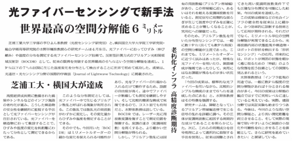 「光ファイバーセンシングで新手法 世界最高の空間分解能6ミリメートル」
